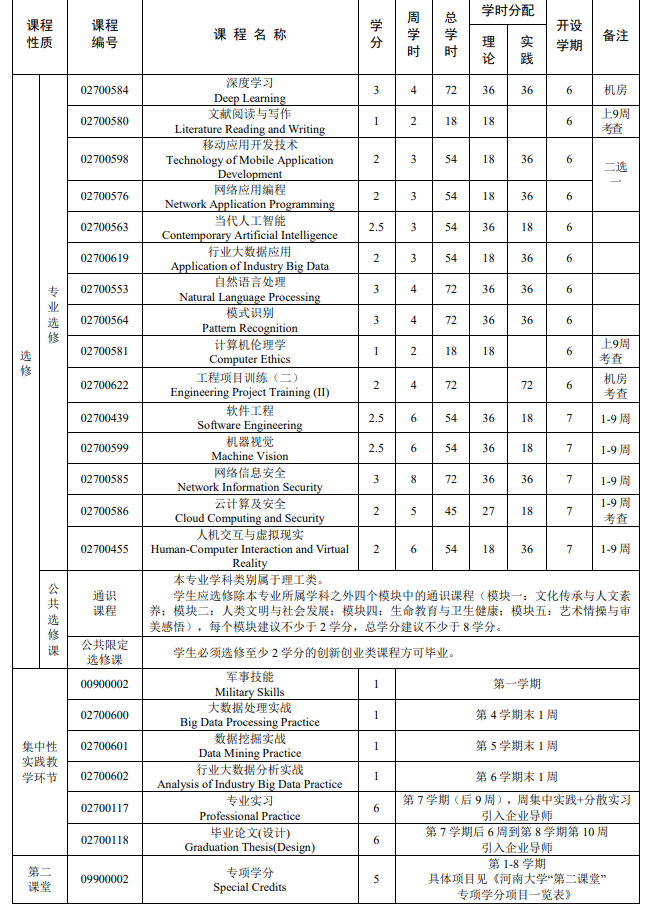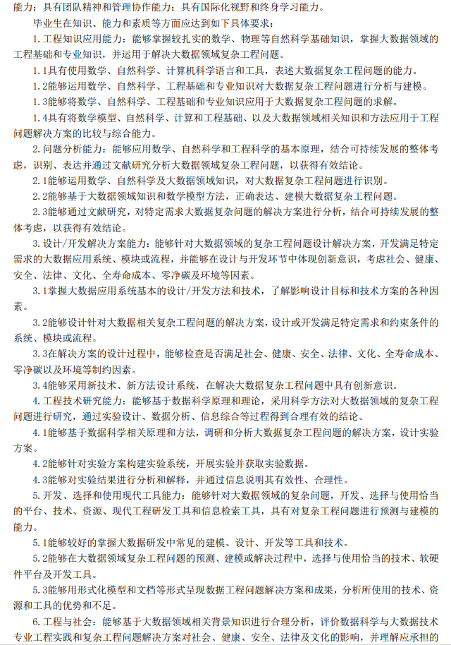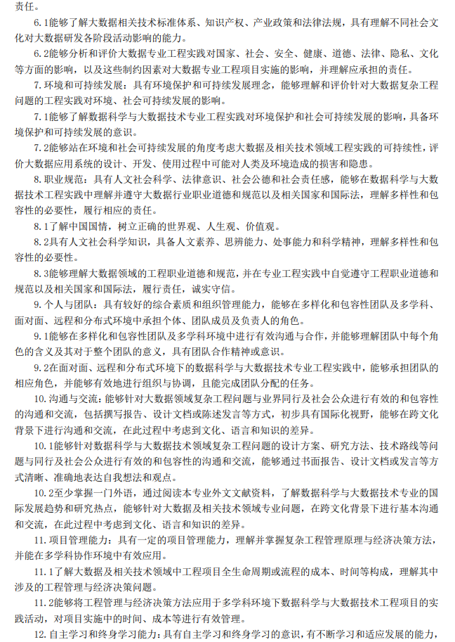 本专业以工程教育专业认证思想为指导,不断完善培养方案和课程体系的建设,并定期开展人才培养方案的论证、修订与完善工作,持续改进,建立了以学生为中心、以能力为目标、以产出为导向、以实现课程目标、学科竞赛为抓手,以多样化教学为重点,以过程性评价为手段,以产学研协同育人、校企协同育人为载体的个性化人才培养模式,致力于培养应用型、复合型大数据高级技术人才,职业发展前景好。该专业学位授权体系健全,科研成绩显著,教学传统优良,在专业人才培养模式和质量、专业教学基本建设、专业市场跟踪等方面取得了长足发展。