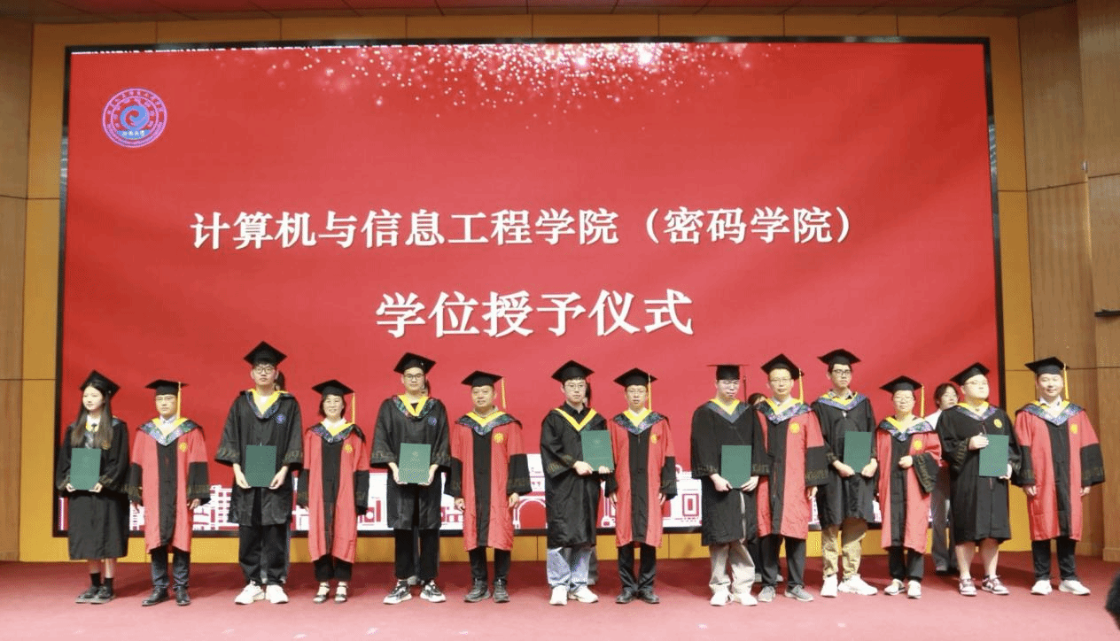 (密码学院)2025届本科生毕业典礼暨学位授予仪式在计算机大楼二楼报告厅隆重举行。学院领导班子成员、学位评定分委员会成员、教师代表、部分学生家长以及2025届全体本科毕业生参加典礼。典礼由学院党委副书记张大帅主持。