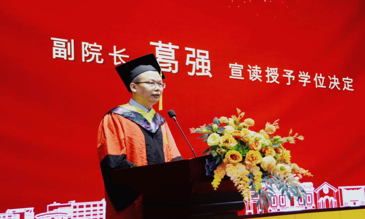 毕业典礼在庄严的国歌中拉开帷幕。副院长葛强宣读《麻豆社