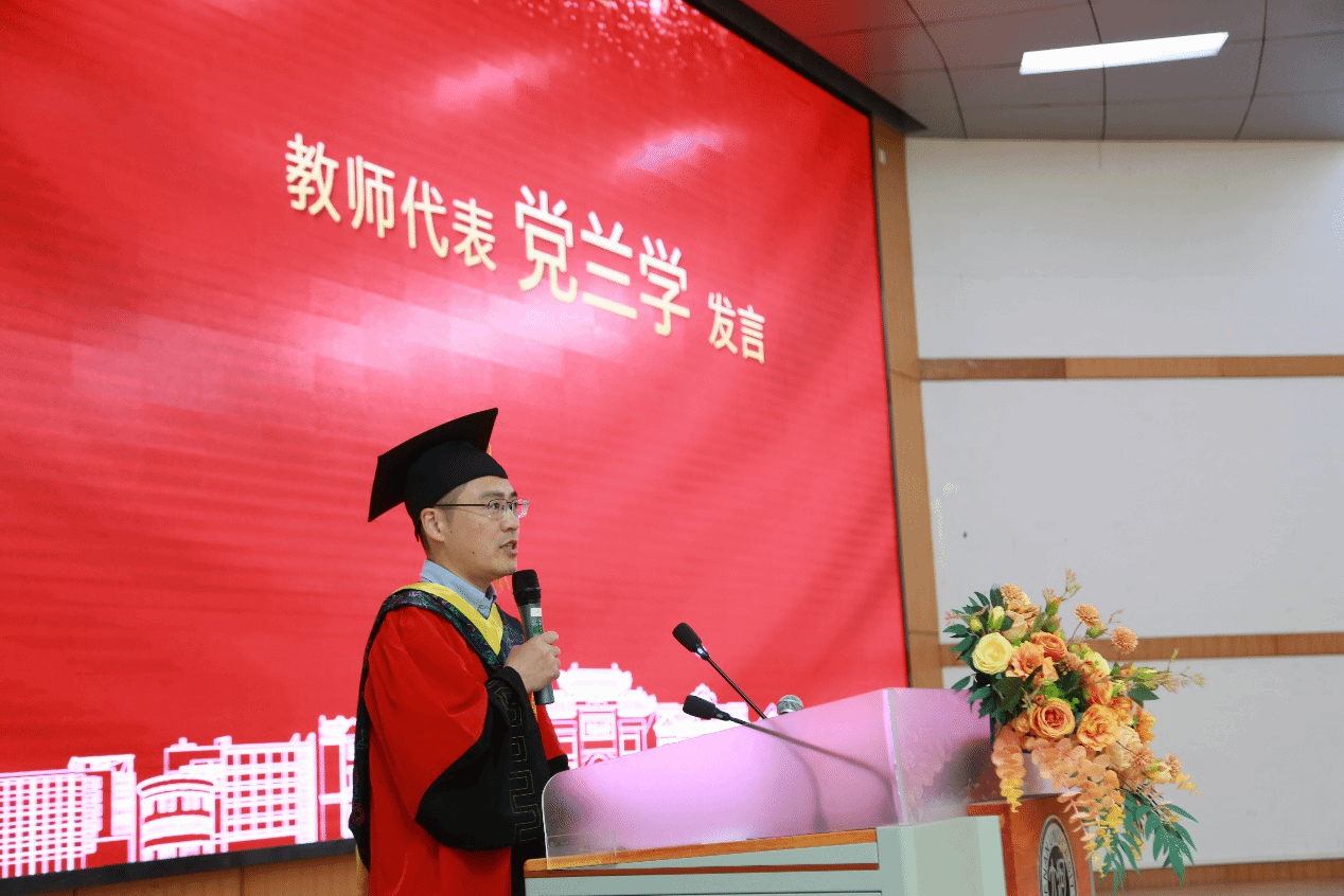 教师代表党兰学代表学院全体老师寄语毕业生三种核心能力:终身学习的续航力、独立破局的创造力、直面未知的自信力,将是你们应对技术变革的利器。真正的成功,在于超越昨天的自己。并祝福同学们前程似锦、鹏程万里!