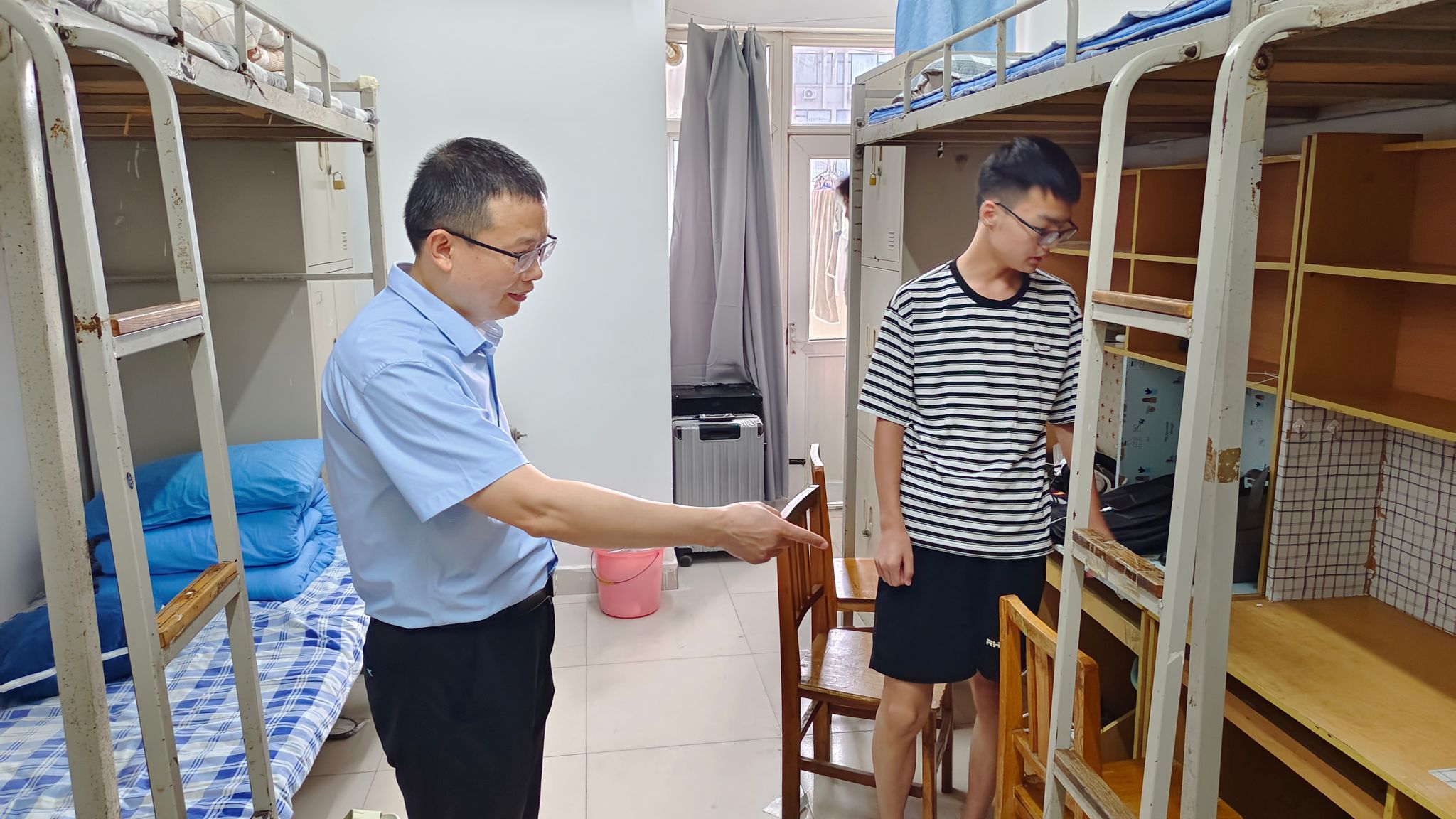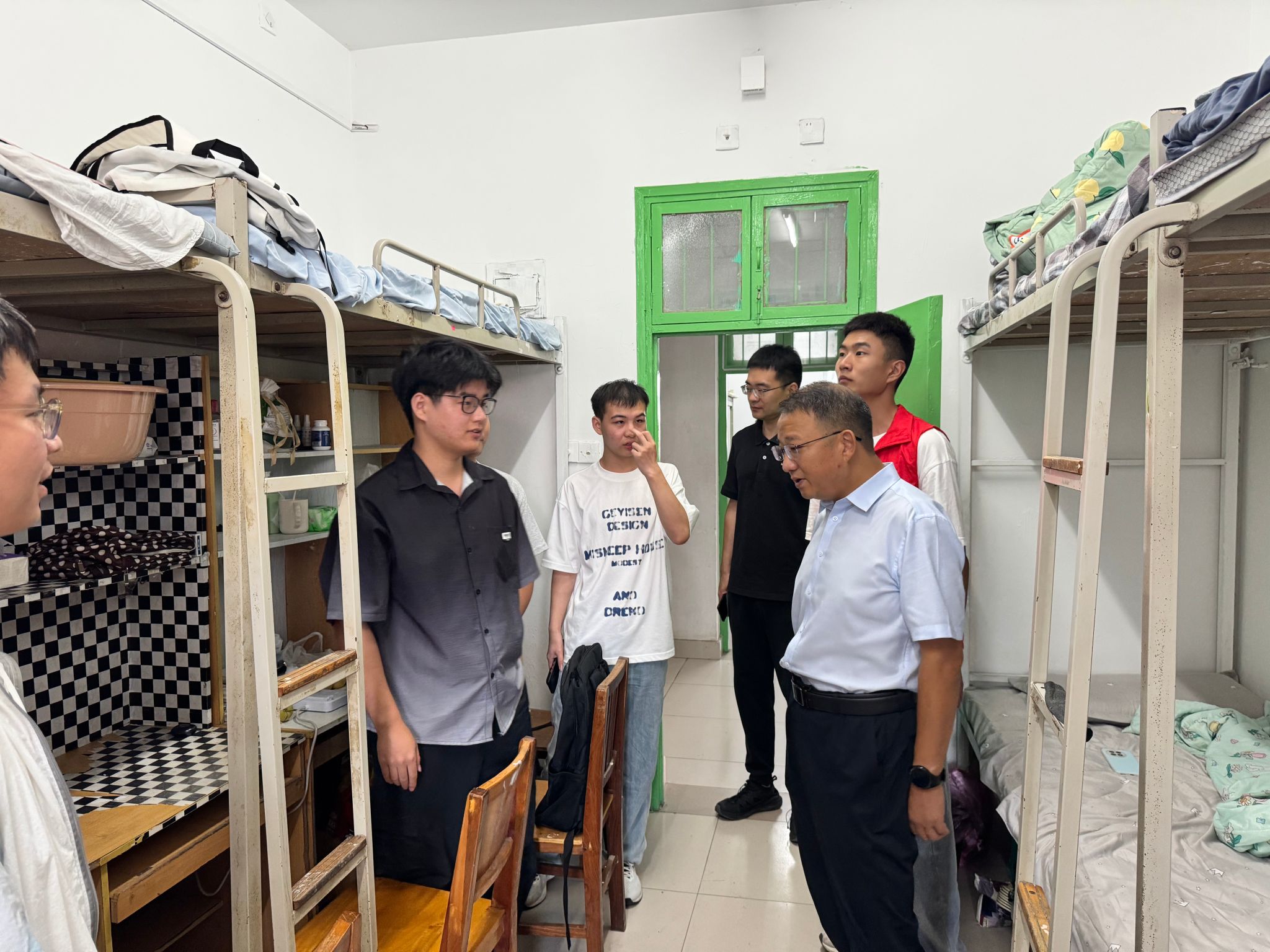 (密码学院)迎来400余名2025级新生。为表达学院对新同学的热烈欢迎与深切关怀,8月31日下午,学院党委书记周志民、执行院长韩道军带领领导班子成员赴东苑学生公寓、南苑学生公寓、研组团公寓走访慰问本科和研究生新生。