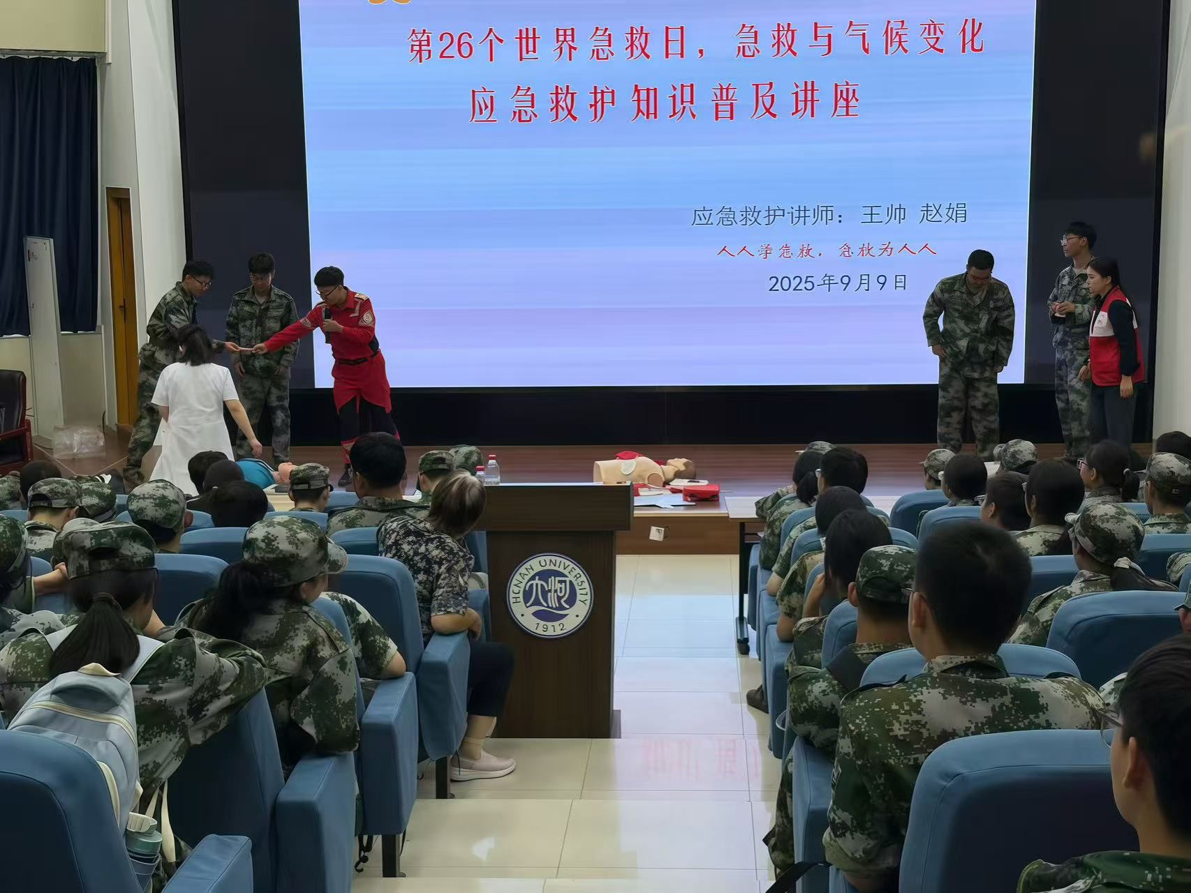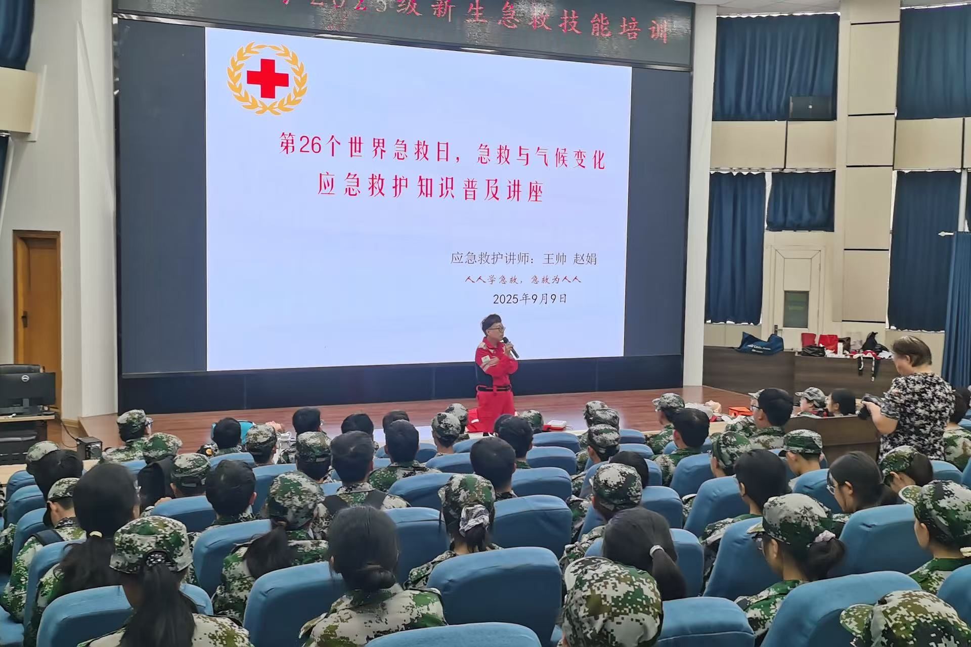 为深入贯彻党中央平安校园理念,提升应急自救与互救能力,掌握基本应急救护技能,筑牢校园安全屏障,2025年9月9日下午,麻豆社 (密码学院)2025级全体新生在金明校区锥形报告厅一楼参加由校医院统筹组织、特邀开封市示范区红十字会专业急救护讲师王帅和开封市蓝鲸水上救援队赵娟进行专业急救技能培训。本次培训内容涵盖心肺复苏+AED、海姆立克急救法及多种创伤包扎方法,为新生送上一堂生命安全必修课。