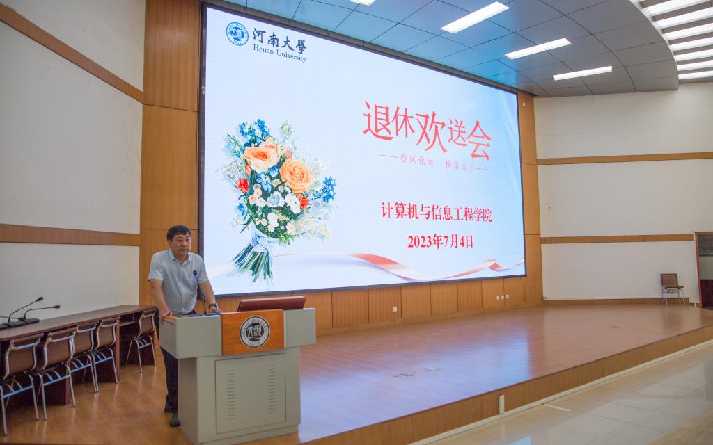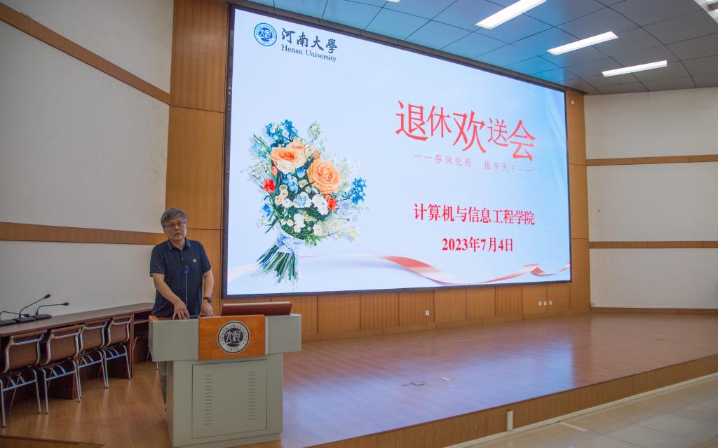 在计算机大楼201会议室举行退休教师欢送会,欢送鲁建国、马润成、沈夏炯三位教师光荣退休。全院教职工齐聚一堂,回忆往事,共叙情谊。欢送会由学院党委书记周志民主持。
