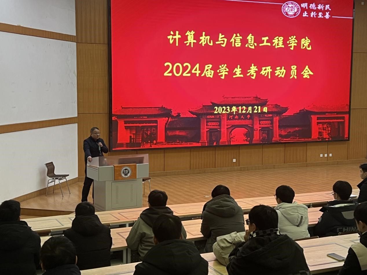 (密码学院)在学院201会议室召开2024届学生考研动员会。学院党委书记周志民、副书记张大帅、副院长葛强、2020级辅导员鲁建国和130余名参加考研的学生参加本次动员会。会议由2020级辅导员鲁建国主持。