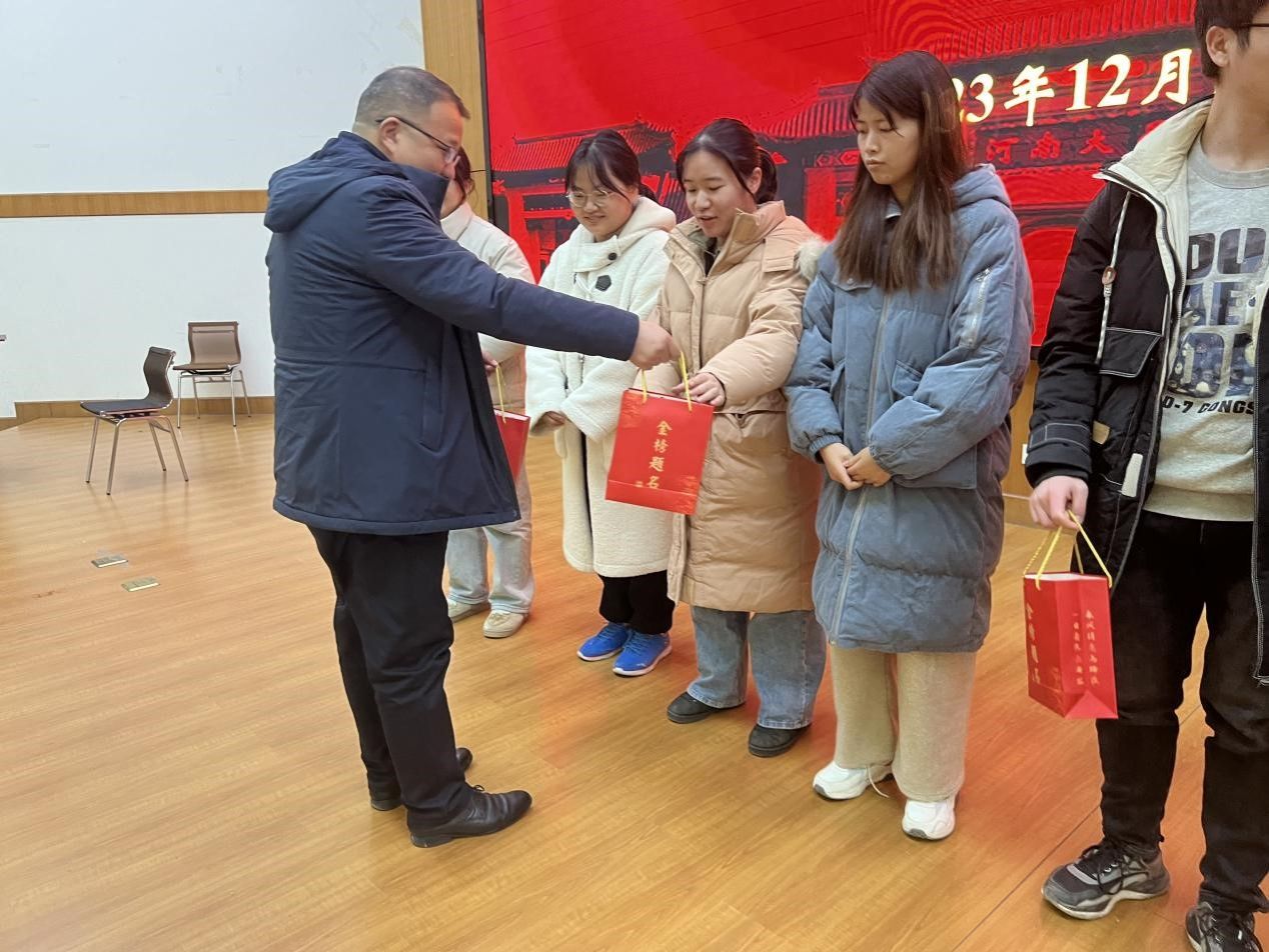 最后,学院领导为学子们送上学院精心准备的考研加油大礼包,“金榜题名”的手提袋中装满了补充能量的士力架、巧克力和旺仔牛奶,寓意满满、期待满满、祝福满满!
