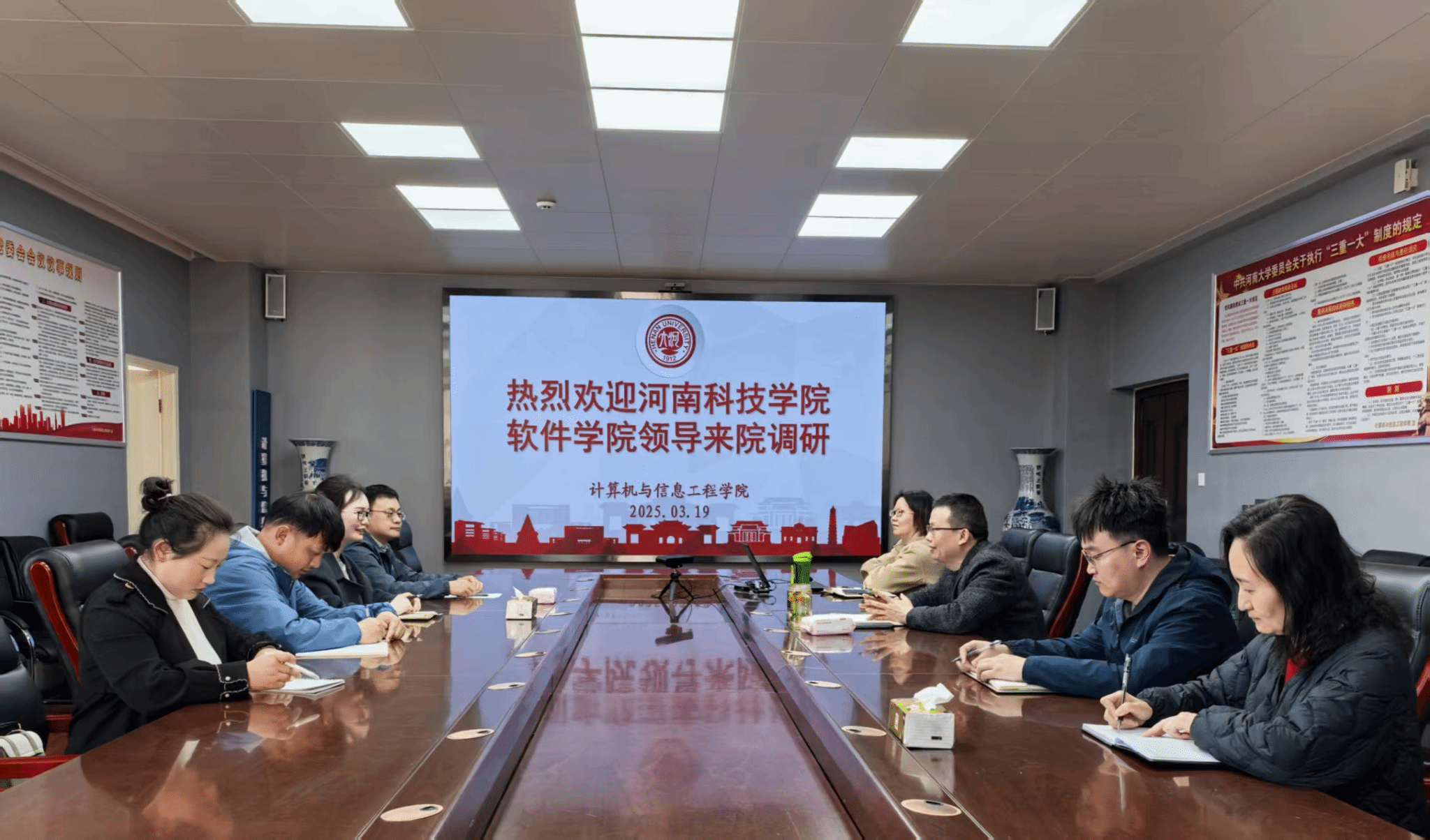 3月19日下午,河南科技学院软件学院副院长马玉琨等一行4人来麻豆社 进行调研交流。学院副院长葛强及数据科学系主任李征等热情接待了马玉琨一行。