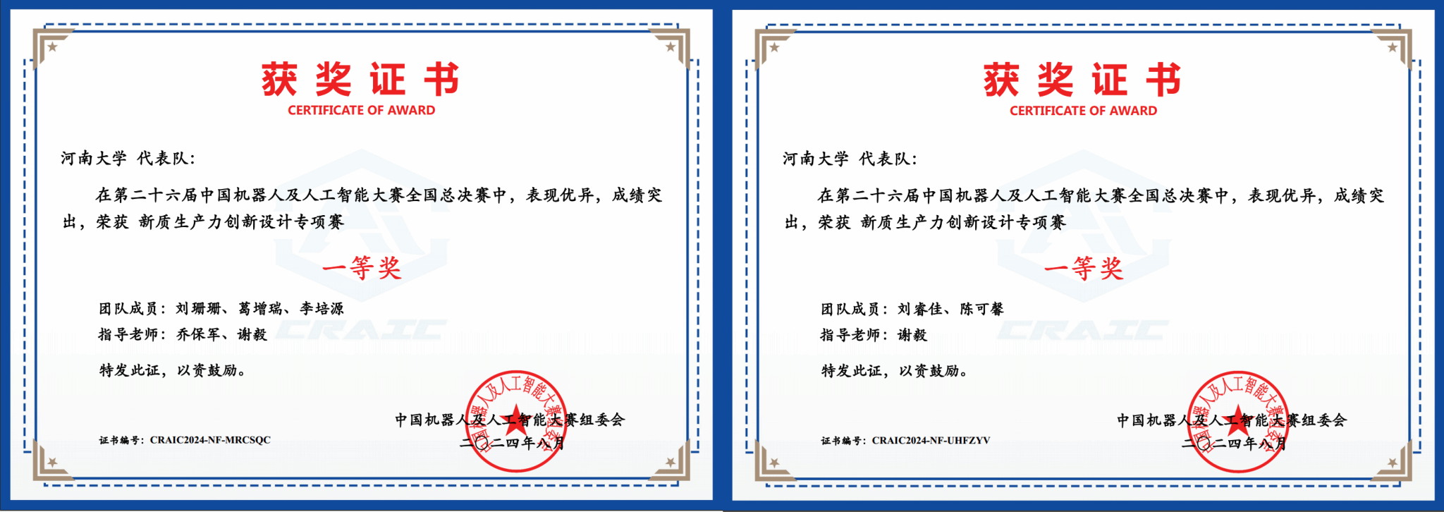 有2个团队获得了第二十六届中国机器人及人工智能大赛全国总决赛新质生产力创新设计专项赛一等奖。1名同学获得了2024年第六届码蹄杯全国大学生程序设计大赛本科院校赛道国赛金奖。4名同学组队入围了第17届信息安全竞赛-作品赛国家级决赛,获得了优胜奖。
