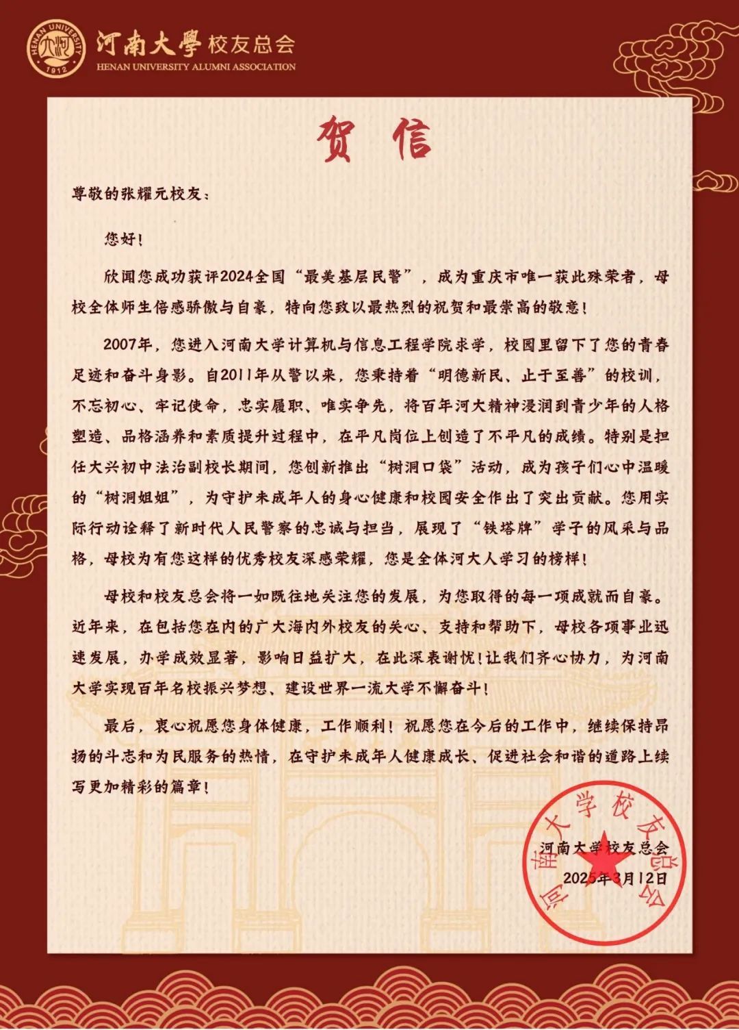 2011届校友、重庆市璧山区公安局治安管理支队内部单位保卫大队教导员张耀元成功获评,系重庆市唯一获评者。